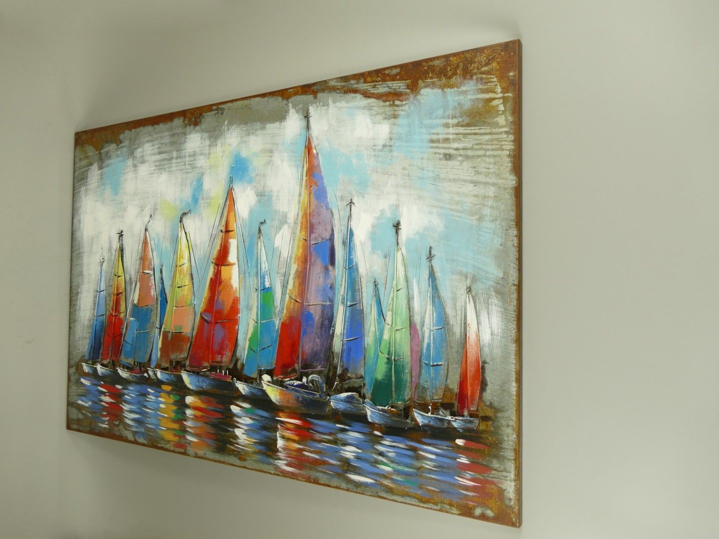 Metalen afbeelding (3D) ijzeren zeilboten L120xB80cm